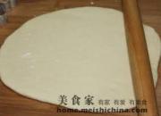 取适量面团,揉圆,擀成约半公分厚的面皮。