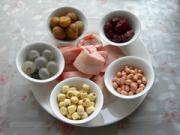 - [2013-03-26]【总决赛】万事如意——满掌金钱 [图]猪手 500克 桂圆 适量 红枣 适量 花生 适量(熟) 栗子 适量(熟) 莲子 适量(熟) 1