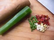 - [2011-10-21]青笋素鸡丁 [图]原料: 青笋 1根 素鸡豆干 1条 调料: 青椒 红椒 姜 蒜 盐 花椒粒 适量 1