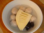 在水里泡一下冷冻冬笋,贡丸和木耳。
