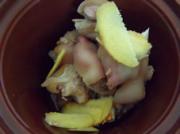 放姜片葱段猪蹄,一起炖三小时,调入盐。调料只放盐,其他什么都不放。