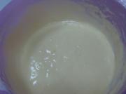 把蛋黄和面粉加到蛋白里搅拌均匀成下面的糊状。
