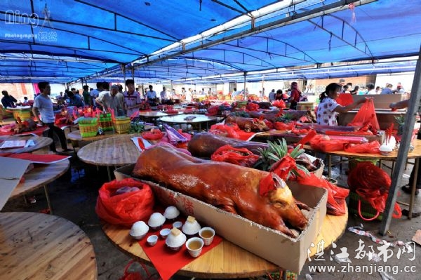 - [2012-07-03]“关公磨刀节”在广东湛江麻章区太平镇东岸村举行 [图] [精]2012年7月1日是农历五月十三,一年一度的“关公磨刀节”在广东湛江麻章区太平镇东岸村举行。 据当地村支书说,东岸村已有800年历史,村中人口约近5000,村民世代以务农为主,兼营渔业。每年的“关公磨刀节”当日,全村家家户户都会烧猪拜节,所有外出打工谋生的村民,也风尘仆仆赶回,加上亲戚朋友纷至沓来,络绎不绝,村中一片喜气洋洋,热闹非凡。拜祭完毕,村民就当场开刀切肉,举杯聚餐,并把烧肉送给亲友分享。“关公磨刀节”又称“关公磨刀节”,是中国民间的传统节日。传说宋真宗时,南海恶龙作怪,为害闽南。真宗求助于张天师,天师则派关羽降妖伏魔。关羽苦战七天,降伏了妖魔。真宗感其神力,封为“义勇武安王”。后来民间多于是日举办关帝庙会,祈求关帝显灵,逐魔消灾,普降甘霖。关公为了记取此次教训,遂于每年五月十三日亲自在南天门外磨刀示威并降雨霖。每到农历五月十三日,各地民众都设坛祭拜关公,借此纪念他的忠勇仁义来弘扬中华民族美德,并祈求国泰民安、风调雨顺。东岸村的“关公磨刀节”更是历史悠久且富有特色,以烧猪拜节为主,最近被选入湛江市第三批 “非遗”项目名录。据东岸村民介绍,每年的“关公磨刀节”,如果在拜祭时巧遇下雨,便是吉兆,是“关公”在磨刀,磨刀水从南天门处降下凡间,雨越大越好,预示当年的光景必将风调雨顺。(文字来自网络)