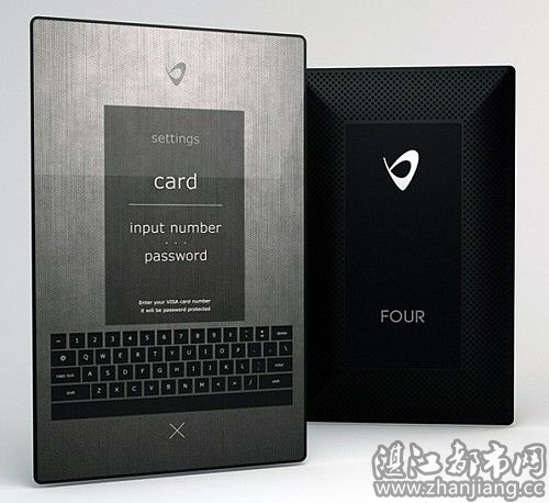 阅读(3574) 回复(0) 查看全文>> - [2012-04-09]媲美ipad的概念产品平板电脑 [图]这是一款概念产品平板电脑名为four出自设计师marko vuckovic。长235mm,宽143mm,它是被设计在家庭内利用,能挂在墙上代替数码相框。从设计图上咱们能看到four是1个此外薄的平板,拥有1个此外稳定的虚拟键盘与无边框设计。能完善的展示人们所爱好的来自大自然的风景与声音,同时还能表现动态的日历与天气预报以及信息资讯等。