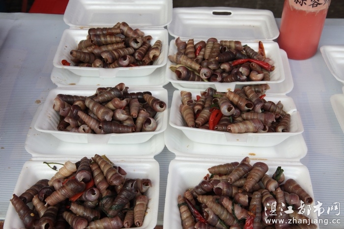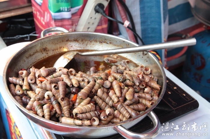 - [2013-11-29]湛江风味小吃:炒螺 [图]炒螺是湛江人的特色菜,用湛江出产的螺(带壳)和酸笋以及各种调料一起炒,既能保持螺肉原有的鲜甜,又能使各种调料的味道得到最大的呈现,是湛江人吃夜宵必点的一道菜。