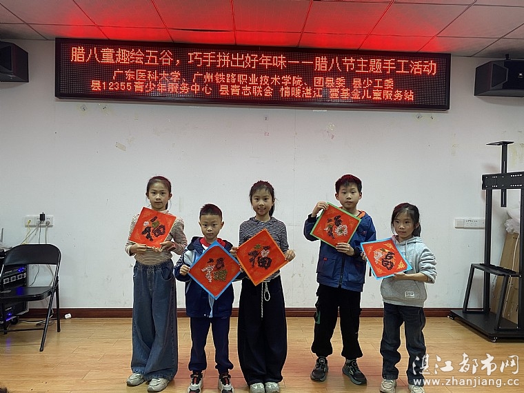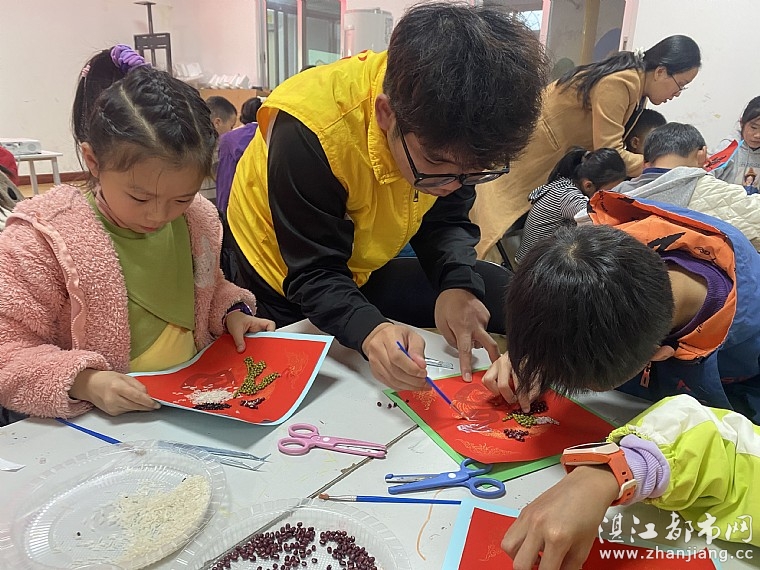 阅读(473) 回复(0) 查看全文>> - [2026-01-27]“情暖湛江”NO.1111遂溪青少年宫儿童服务站开展腊八童趣绘五谷 巧 .. [图]“情暖湛江”no.1111遂溪青少年宫儿童服务站开展腊八童趣绘五谷 巧手拼出好年味——腊八节主题手工活动 为传承中华优秀传统文化,让青少年深入了解腊八节的历史渊源与民俗内涵,1月24日,广东医科大学、广州铁路职业技术学院、共青团遂溪县委员会、遂溪县少工委、遂溪县12355青少年服务中心、遂溪县青年志愿服务联合会、湛江市情暖湛江志愿者协会、no.1111壹基金儿童服务站联合开展腊八童趣绘五谷 巧手拼出好年味——腊八节主题手工活动。 活动伊始,志愿者老师以生动有趣的语言为孩子们开启了腊八节文化之旅。从“腊八节的起源传说”讲起,细致讲解了古人“腊祭祖先、祈求丰收”的传统习俗,以及南北各地“喝腊八粥、腌腊八蒜、晒腊八豆”等特色民俗。同时,着重介绍了五谷杂粮在腊八文化中的象征意义——稻、黍、稷、麦、菽不仅是腊八粥的核心食材,更承载着“五谷丰登、国泰民安”的美好寓意,为后续的手工制作环节埋下文化伏笔,让孩子们在动手前先读懂传统。 文化讲解结束后,“五谷福字画”制作环节正式拉开帷幕。志愿者老师提前备好白米、红豆、绿豆、黑豆、黑米等五彩杂粮,以及印有福字和祥云的年味图案的红纸、胶水、镊子等工具。志愿者先示范讲解五谷粘贴的技巧,从胶水涂抹的均匀度、杂粮摆放的层次感,到色彩搭配的协调性,逐一细致指导。孩子们听得认真、做得专注,有的精心挑选不同颜色的杂粮搭配图案,有的用镊子小心翼翼地将颗粒粘贴到位,有的与身边小伙伴互相交流技巧。遇到粘贴不牢固、图案不对称等问题时,志愿者与家长志愿者及时上前协助。经过近一个小时的创作,一幅幅色彩斑斓、充满童趣的五谷福字画新鲜出炉,孩子们脸上洋溢着满满的成就感。