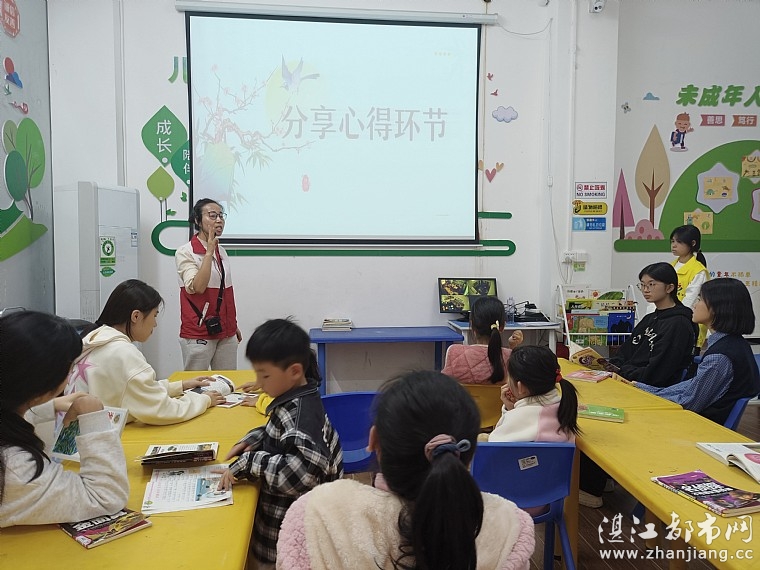 在情景模拟环节,老手邀请三位孩子演绎学生、坏人和警察三个角色,孩子根据老师设计的贴近生活的场景进行演绎,让孩子们在模拟中学会识别潜在危险信号,掌握正确的应对技巧。通过此环节,孩子们学习到了遇到这类情况需要保持冷阅读(1182) 回复(0) 查看全文>> - [2025-02-24]“情暖湛江”N784瑞景社区开展“悦读越精彩”读书分享会活动 [图]2025瑞景社区开展“悦读越精彩”读书分享会活动 图/何妹 文/晓玲 书籍是人类进步的阶梯,培养孩子们的审美视角,提升多元化的思维能力,和孩子们共享阅读带来的快乐。2025年2月22日下午,共青团湛江市委员会、湛江市志愿服务联合会、瑞景社区新时代文明实践站、瑞景社区家长学校、湛江市情暖湛江志愿者协会、n784瑞景社区儿童服务站携手开展“悦读越精彩”读书分享会活动。本次活动参与人数26 人。