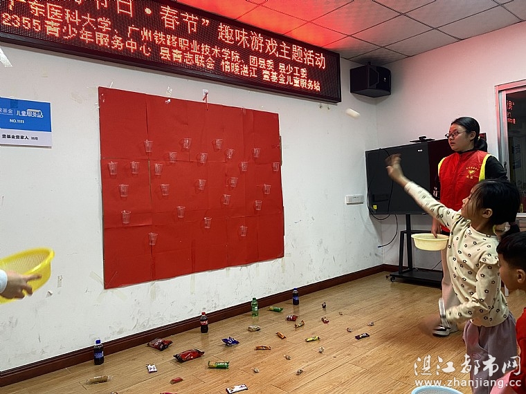 阅读(836) 回复(0) 查看全文>> - [2026-02-21]“情暖湛江”NO.1111遂溪青少年宫儿童服务站开展“我们的节日·春节 .. [图]“情暖湛江”no.1111遂溪青少年宫儿童服务站开展“我们的节日·春节”趣味游戏主题活动 为大力弘扬中华优秀传统文化,让青少年在趣味互动中感受浓浓的年味,2月14日,广东医科大学、广州铁路职业技术学院、共青团遂溪县委员会、遂溪县少工委、遂溪县12355青少年服务中心、遂溪县青年志愿服务联合会、湛江市情暖湛江志愿者协会、no.1111壹基金儿童服务站联合开展 “我们的节日·春节”趣味游戏主题活动。 活动伊始,志愿者老师向孩子们介绍了本次新春趣味游戏的流程与规则,说明本次活动有好运乒乓球、趣味套圈圈、猜灯谜三个游戏环节,让孩子们在闯关打卡中收获快乐与奖品。 第一个游戏好运乒乓球拉开序幕。志愿者向孩子们讲解规则:每位小朋友发放10个乒乓球,在指定距离外将球投入杯子中,投中2个即可获得奖品。孩子们个个摩拳擦掌,瞄准杯子奋力投掷。