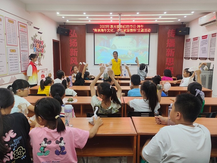 - [2025-05-31]”情暖湛江”N516儿童服务站2025年湖光镇我们的节日·端午“传承端 .. [图]2025年湖光镇我们的节日·端午 “传承端午文化,不忘家国情怀”主题活动 图/林思玉 文/王晓欣 端午节是我国重要的传统节日,有着独特的传统风俗魅力。为了让孩子们深入了解端午文化的内涵和价值,增强对传统文化的认同感和自豪感,同时培养家国情怀,激发爱国热情,2025年5月31日上午由共青团湛江市委员会、麻章区志愿服务总队、湖光镇团委、湖光镇创文办、湖光镇新时代文明实践所、湖光镇妇联、湖光镇综合文化站、湛江市情暖湛江志愿者协会、n516壹基金儿童服务站(湖光镇文化站)开展2025年湖光镇我们的节日·端午“传承端午文化,不忘家国情怀”主题活动。有志愿者、儿童共40人参加了此次活动。