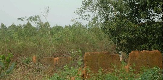 白土岭座落在北和镇的东北方向,离北和镇河门村大约只有2公里。为进入白土岭村,我们首先到河门村问路,问了几位青年,他们都不知有这么一个村子。后来,几位上了年纪的村民才告诉我们,如果没有人带你到入村的路口,恐怕你们无法找到进入白土岭村的路。于是,河门村一位好心的中年妇女就骑车带我们到白土岭村入村的路口。我们在通向调洋村的水泥硬底路与进入白土岭村的红泥路交界处,看到竖立着一个大石头,但上面没有雕刻着任何的字迹,与其说是村牌,不如说是进入白土岭村的标志。我们与那位带路的妇女告别之后,我们就沿着两边长满杂草荆棘,坎坷不平的红泥小路前行,路面没有看到任何车辆留下的痕迹,足以证明来往人的稀少,一片桉树林又接着一片桉树林的,在树林里走了十多分钟,没有遇到任何一个人,更不知道所走的路是否能到达白土岭村,只听林中的布谷鸟不停哀叫,让人有几份的恐惧感。终于一片茂密的荔枝林出现在我们的眼前,树荫下掩映着几座破旧茅草房,听不到鸡狗之鸣叫声,几份宁静,几份安祥。