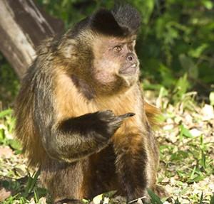 棕色卷尾猴愤怒地竖起了中指。