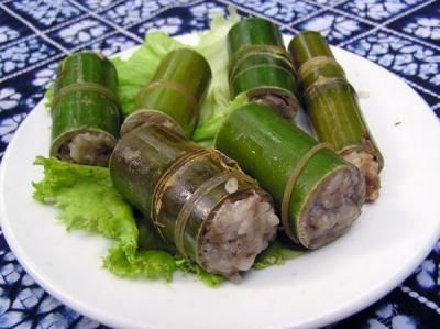 阅读(7997) 回复(0) 查看全文>> - [2012-06-30]云南香竹饭 [图]简介:香竹饭是用西双版纳一种本身会散发香味、像青笋一样粗细的竹子做的。到每年稻子成熟时节,烧竹筒饭既是青年男女聚会的好时节,背上白糯米、紫糯米,带上花生、腊肉,约上小仆少、小仆冒,路边砍上棵香竹,到河边、田间烧竹筒饭去。 吃法:香竹饭又叫竹筒饭,是把糯米放在香竹筒里,用水浸泡15分钟后,用火烘烤而成。吃时,捶打竹筒使之变软,竹筒内壁的竹腹便贴在饭上,用刀一剖两半,香竹饭便脱竹而出,香气浓郁,饭软而细腻。用紫糯米烧制的竹筒饭味道更是香味扑鼻。先把香竹按两个竹节砍下,在一端的竹节中挖一个孔,把洗过的糯米放入香竹中,再加入一些水,然后用竹叶塞住孔,放在火炭上烤。到竹子的水分被烘干后,竹筒就会自然爆裂,里面的香竹饭也就熟了。这时,你只要掰开竹片就能见到一层薄薄的白色香膜紧粘在糯米饭上,一根白色的糯米“香肠”展现在眼前,晶莹柔软的米粒弥漫着香味,让人口生津液,胃口大开。 价格:几元钱一个,也是敞开吃的,不过糯米比较黏,吃多了容易胃不舒服。