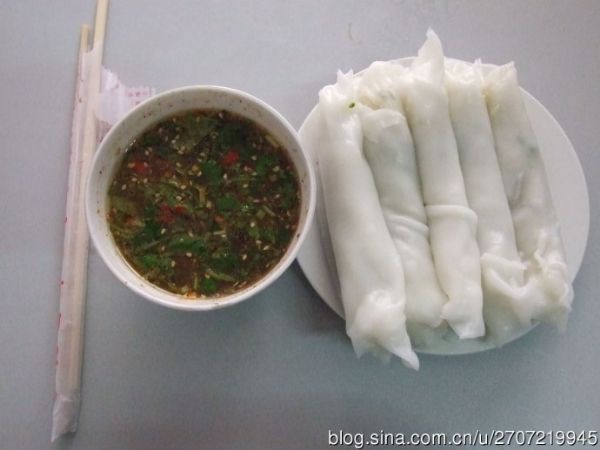 阅读(7910) 回复(0) 查看全文>> - [2012-06-30]开远小卷粉 [图]简介:小卷粉是云南开远的特色小吃,她是用大米磨成米浆现蒸成米粉,包上各种馅心,配上美味的蘸水,现做现吃的风味佳点。人们围坐在摊旁,耳闻目睹其制作过程,蘸着配制好的蘸水,鲜香滑嫩,乐趣融融。小卷粉皮质透明滑嫩,薄而有劲道,仿若一翩翩少女,故有小公主之美誉,这要得益于开远的水质,开远的独特水质使得烹制出的小卷粉如此漂亮,入口爽滑。 来历:开远地处滇南,处于滇越铁路的中段,过去是滇越铁路的重要枢纽,历史上不少越南人为谋生计,沿着铁路北上进入中国境内,把越南一些点心小吃的制作方法也传到滇南一带。开远小卷粉就是在越南小卷筒的基础上,经过开远历代饮食经营者的不断改革创新,逐步发展定型为今天我们见到的小卷粉。 吃法:用大勺舀一勺调制搅拌好的米浆,徐徐铺开在荡漾着水蒸汽的纱布上,下面是滚烫的开水,盖上锅盖,大约一分钟左右,米浆便凝固成好看的片状。再用竹片轻轻将米皮挑起来,弹性很好,米皮一闪一闪仿佛在竹片上跳着舞。接着平铺在搪瓷盘子上,擦一点油,把馅料轻轻撒在米皮上,再卷起来,抽出竹片,一道非常具有生命色彩的小吃就诞生了。正宗的开远小卷粉都是现买现做,并且开远的小摊家家都是生意火爆,性急的朋友可要耐点性子,其实等待上菜的过程,就像等待前来约会的情人,一盘热气腾腾的小卷粉端上桌来,舌尖柔软的接触,味蕾兴奋的挑动,一切的等待过后,就像高潮的到来,非常美好。 价格:价格灰常便宜,一般地方不会超过5元。