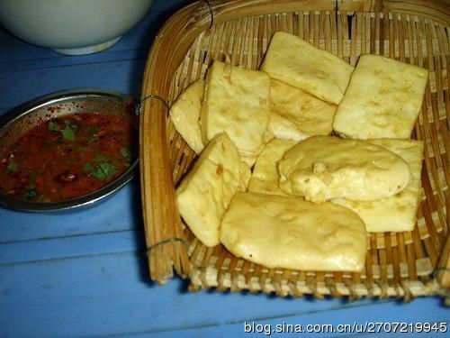 - [2012-06-30]小吃包浆豆腐 [图]简介:豆腐们伏在烧烤架上,几分钟后,包浆豆腐膨胀,噗噗地冒着热气,这时候它们是饱满的,一戳即破的样子,外皮也变得金黄金黄的,香气开始四溢。店里的用卖家提供的卤腐汁蘸碟和干椒芝麻蘸碟,这香气就不仅仅是泛滥了,开始钩人魂魄了。挟上一块颤颤微微的包浆豆腐,往汁水里一蘸,那吹弹即破的身量就开始萎缩了,浸满了汁液。再往嘴里一放,一股嫩得滴水的浆汁就涌进了嘴里,根本无需咀嚼,就这样一路滑到了胃里,带着炭火的热气。再细嚼外皮,脆脆的豆香,又是另外一番境界。这样的享受让人无法不被俘虏。我就这样顺着温热的体验滑到了包浆豆腐的世界里。 起源:云南包浆豆腐没有湖南臭豆腐有名,所谓包浆,就是外层烤熟了之后,内层却是浆液,咬下去烫口,但浆液十分香浓。包浆豆腐是红河州的一种着名小吃,九十年代初由开远市看守所旁一对开小馆子的夫妇所创,据说最初只是因为制作过程中的一次手误而成,夫妇二人试尝之,味极美,遂成为独家绝艺,之后好食之人闻香而至,久之成名。 吃法:在正常程序的制作过程后要经过捂的工序,也就相当于快速发酵。把豆腐块整齐堆放在筛子里用洁白的纱布和土布(以前自己纺的那种)包裹严实放在通风地带,如果是冷天的话还得盖上新鲜稻草,天热则盖上沙网。一般需要2到4天时间,生了则酸且硬,过了则太软,没法烤制。熟好的豆腐用炭小火慢慢烤制,不放油自然烘熟。加上用炭灰焙制的干辣椒,花椒,茴香籽,花生(碾碎) 价格:多见于夜市,均价5毛钱一块