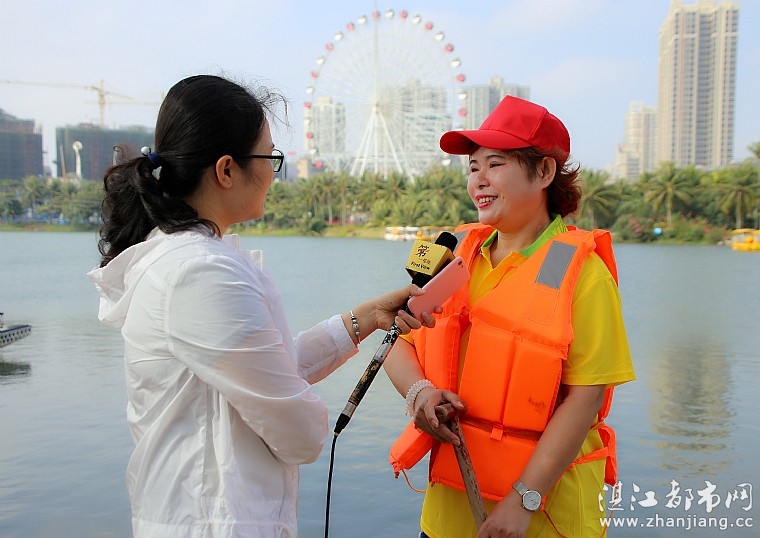 当天上午,冬日暖阳,湛江娃娃美素颜俱乐部成员聚集月亮湖畔,与广东海洋大学龙舟队一起做热身运动,并认真聆听划龙舟的注意事项,学习握桨划龙舟的方法方式。随后,众人穿上救生衣,分别登上两艘小龙舟,进行龙舟表演赛。月亮湖上,鼓声咚咚,龙舟队员们奋力划桨竞速,吸引了公园内游玩的市民与游客驻足观看。