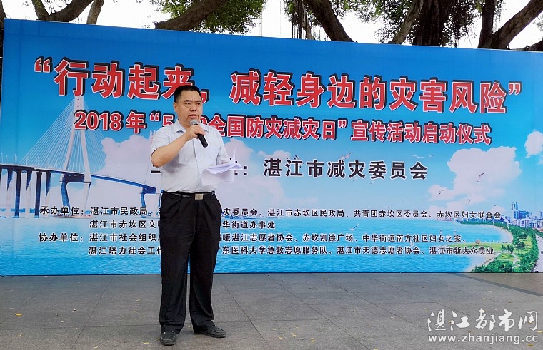 &阅读(6240) 回复(0) 查看全文>> - [2018-05-16]“行动起来,减轻身边的灾害风险” [图]“行动起来,减轻身边的灾害风险” ——2018年“5·12全国防灾减灾日”宣传活动启动仪式 湛江都市网讯(图/文:燕燕于飞): 2018年5月12日,全国防灾减灾日,由湛江市减灾委员会主办,湛江市民政局、共青团赤坎区委员会、赤坎区妇联、赤坎区文明办、湛江市社会组织总会和湛江市情暖湛江志愿者协会等多个单位与志愿团体在赤坎区凯德购物广场,举办以“行动起来,减轻身边的灾害风险”为主题的2018年“5·12全国防灾减灾日”宣传活动启动仪式。