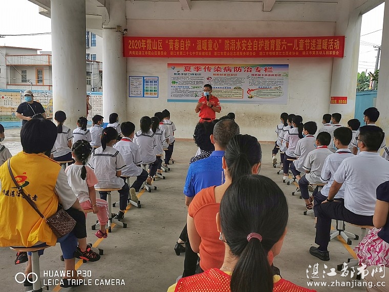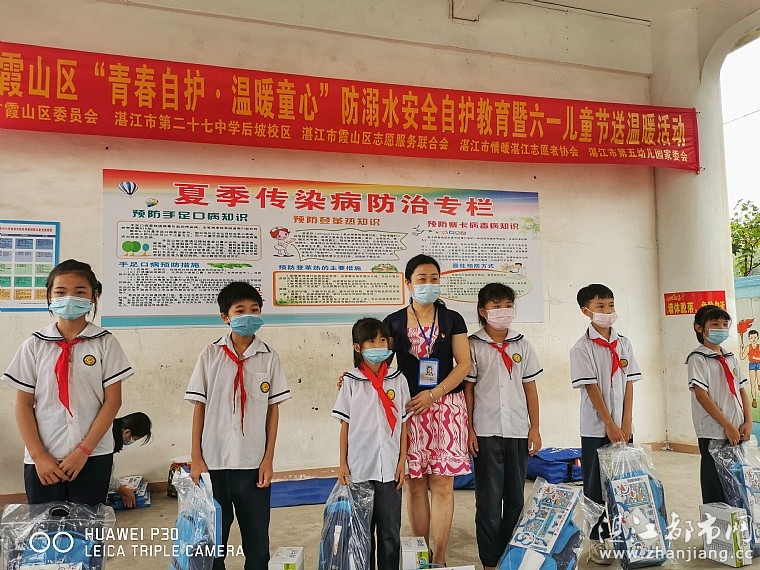 - [2020-05-29]2020年霞山区“青春自护·温暖童心”防溺水安全自护教育暨六一儿童节送 .. [图]2020年霞山区“青春自护·温暖童心”防溺水安全自护教育暨六一儿童节送温暖活动 湛江都市网讯(图:陈爱婷/文:燕燕于飞):5月29日,共青团湛江市霞山区委员会、湛江市霞山区志愿服务联合会、湛江市情暖湛江志愿者协会、湛江市情暖湛江志愿应急救援队和湛江市第五幼儿园家委会在湛江市第二十七中学后坡校区开展2020年霞山区“青春自护·温暖童心”防溺水安全自护教育暨六一儿童节送温暖活动,慰问30名贫困学生和留守儿童,为他们送上书包、文具套装、牛奶等儿童节礼物,以及节日问候。