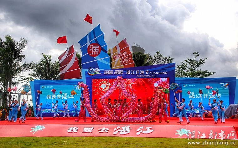 开渔节首先发布“我要去湛江”文旅复苏助力百业复兴活动、“我要去湛江的理由”征集活动视频和“我要去湛江”旅游线路,并启动“我要去湛江”系列活动。接着,舞蹈《海之恋》、《人龙腾四海》、《鱼灯呈祥》、《傩舞纳福》和祭海仪式《祈福开渔节》等极富湛江海洋特色的非遗节目轮番展演。近午,随着击鼓声响起,2020年湛江开渔节正式启动。湛江湾海域,马达轰鸣,鞭炮齐响,万船竞发,开启大海最为欢腾的时刻。