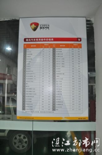 配件价格表的近景。必须存!