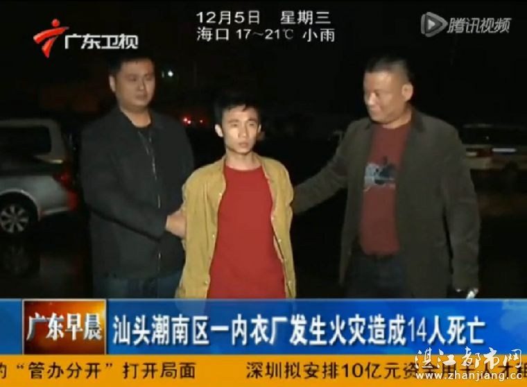 阅读(4266) 回复(5) 查看全文>> - [2012-12-06]汕头火灾嫌犯纵火想让老板破产没害怕过 [图]12月4日下午,汕头市潮南区陈店镇新溪西村一家文胸作坊发生火灾,导致14人死亡,1人重伤。昨日,潮南区政府及汕头市公安局召开新闻发布会通报案件调查和事故处理情况。据通报,犯罪嫌疑人刘双云是这家文胸作坊的员工,因被老板拖欠3000元工资、并且要扣罚500元工资,心存怨恨而纵火。
