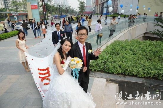 - [2012-12-11]新娘身披520米长婚纱出嫁羡煞旁人 [图]2012年12月9日,一场炫目的婚礼在南宁市举行,新娘农小姐身披520米长的婚纱,与新郎覃先生喜结连理。