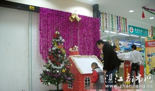 - [2012-12-19]商家纷纷布置圣诞装饰 点亮圣诞气氛 [图]圣诞节即将来临,大型商场已纷纷提前在大厅内及门前布置圣诞主题装饰,营造购物氛围,以迎接即将到来的圣诞节和新年销售旺季。 前天,路过霞山城市广场正门,看到门口两边分别摆着圣诞老人、圣诞树,圣诞彩带、圣诞灯饰、圣诞屋等场景,今年特色款的圣诞老人,拧着乐器时而揍响乐曲,形态各异,吸引过往市民驻足观看。