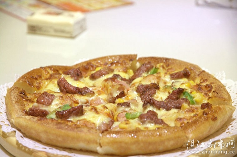 - [2013-12-31]湛江至尊比萨手工现烤 [图]地道手工现做现烤,意式风味始终如一 以其道地的手工现做现烤意大利比萨、意大利面、通心粉及各种美味点心而深受美食者与小朋友们的喜爱。每到晚上就有不少家长带着子女前来就餐;一个大比萨几乎可以足够成为晚餐,饱腹满足感十分惬意。比萨刚刚出炉散发出来的香味实在令人难以抵挡!具体详情:进入