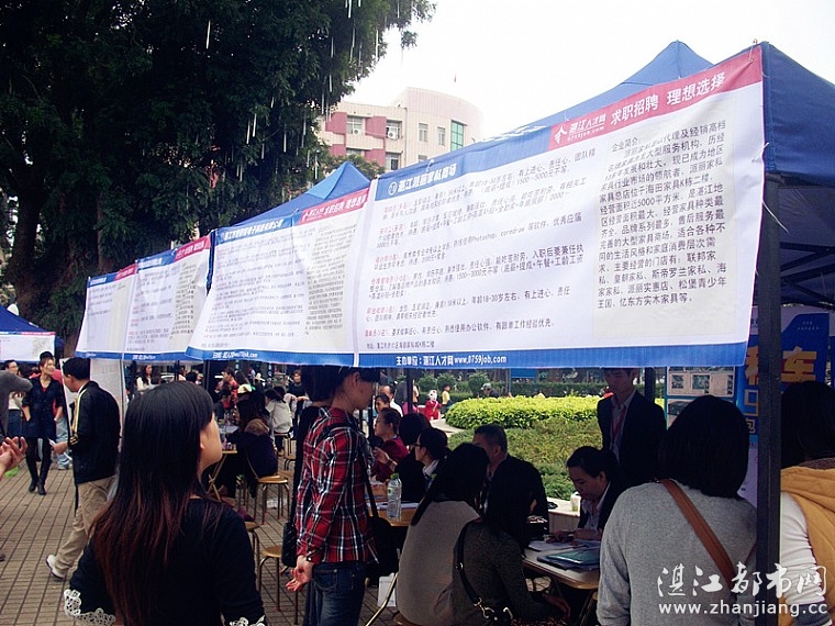阅读(3123) 回复(3) 查看全文>> - [2013-03-02]湛江企业春季招聘为高校生带来就业春天 [图]2013年3月2日,由湛江人才网举办的招聘会在霞山人民广场举行,吸引了大批青年前来咨询投简历;其中就有些企业开出5000-8000元月薪优厚待遇的岗位。 无论是技术工,还是高校毕业生,都大叹“找工难、单位少”,而各大企业在一片“找工难”之声中也苦叹“招工难”。笔者觉得,这个“两难”并不是绝对的,而是“招工”和“找工”双方期望值过高的缘故。特别是刚走出社会的一些高校毕业生,由于不根据自身特点,盲目追求所谓的高薪又舒适的工作,因此往往会造成“难揾工”的假象。