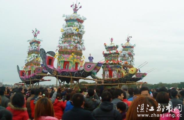 阅读(3392) 回复(0) 查看全文>> - [2013-03-29]茂名高州“四大园年例”够热闹 [图]年例是粤西地区一个独特的传统节日,所谓年例,即是年年有例!在中国的众多传统节日中,春节可算是最为热闹的。然而在粤西岭南一带,在春节之后仍有特别的节日要过,那就是具有地方特色的民间文化习俗——年例。 广东省茂名市高州县“四大园年例”。其中一共有四条村参与到本次年例【具体包括:坡尾村、旧坡村、上莲塘村、下莲塘村】。粤西地区几乎村村有年例,一般年例都是单个村举行的。而本处年例最大的看点就在于它由四条村同时进行和特有的“四村游船”的超盛大场面,估计本次年例观看游船的人数接近2000人!相当一部分观众更是冒名而来的,有镇上其他村的更有高州县内其他镇的观众。 “四大园年例”每一年的时间都不一样,每年春节过后年初二就是占卜来确定年例的时间几月几日!