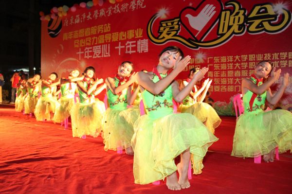 - [2011-12-05]祝贺广东海洋大学海滨校区青年志愿者服务站成立十周年 [图]广东海洋大学海滨校区青年志愿者服务站成立十周年爱心晚会,在应广东海洋大学海滨校区青年志愿者服务站现任站长马健俊邀请;情暖湛江志愿者服务队由老雾、梁姐、子珊妈和子珊、童心以及海华组成的代表参与了此次晚会。