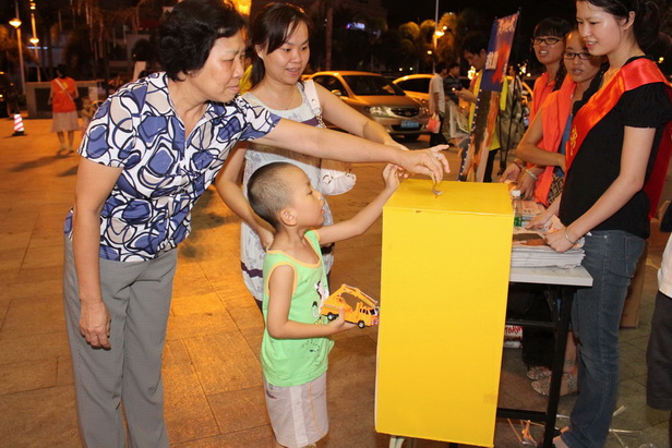 阅读(10739) 回复(32) 查看全文>> - [2011-07-09]【参与】献出一份爱心 救孩子一命——湛江日报社救助大义卖应报社发行部邀请,情暖湛江志愿者服务队一行9人,于7月8日18:00—22:00在荣基广场,参加报社各部门联合举行救助义卖湛江晚报活动,所筹集资金将全部捐赠给小安小木兄弟作为治疗费用。