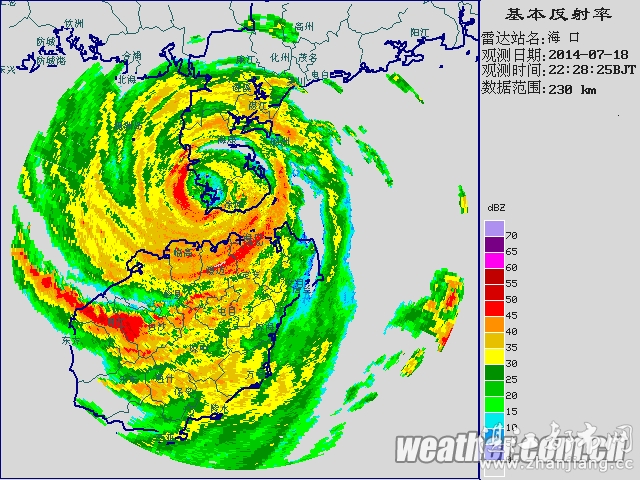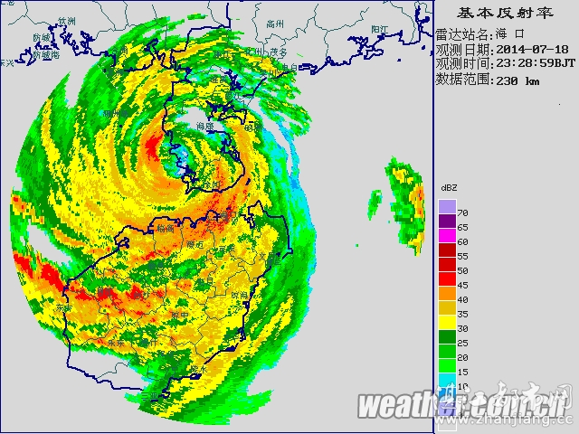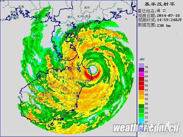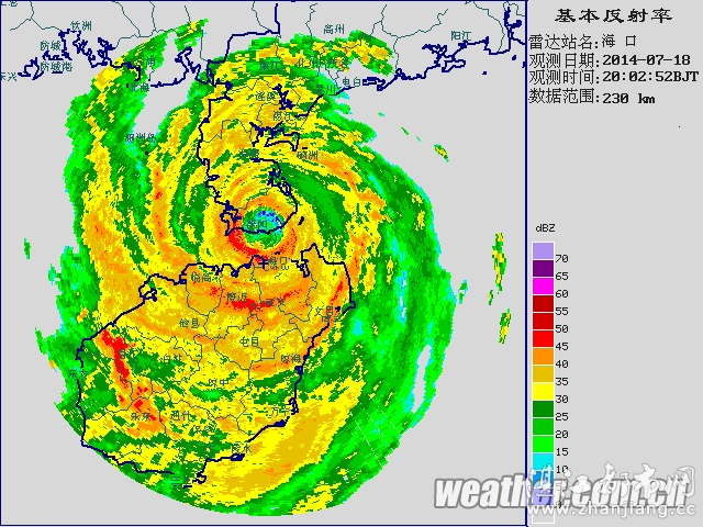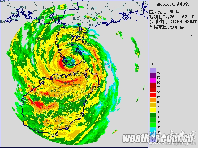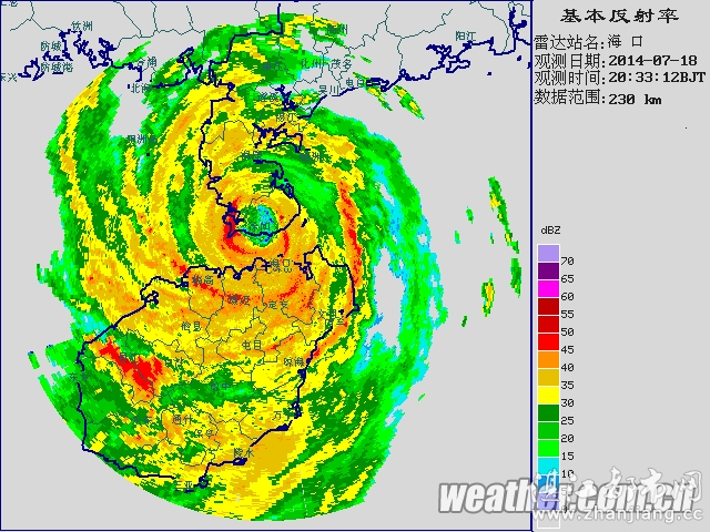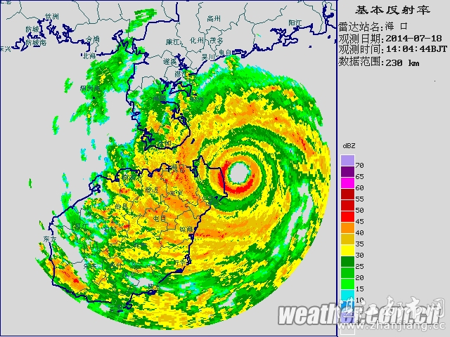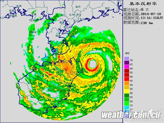 - [2014-07-18]【睇真的】超级“威马逊”台风眼路径——雷达探测 [图]【睇真的】超级“威马逊”(雷达波)台风眼~傍晚八点到徐闻? 海口雷达——点击(可连续)“动态播放”:[注:限当时(3-6小时时)段] http://www.weather.com.cn/static/radar_video_v1.php?class=jc_radar_az9898_jb 18日15:30(部分眼区)登陆文昌翁田镇沿海;预计今晚8点可到达徐闻再登陆