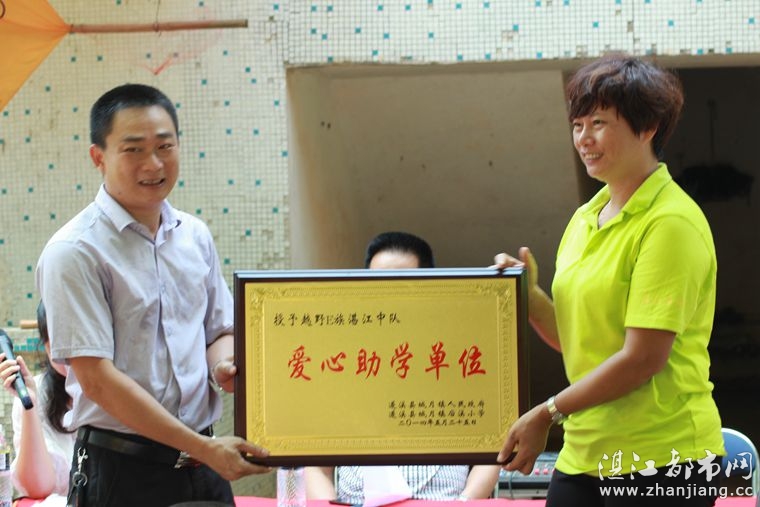 湛江纵横大地俱乐部负责人陈浩云先生接受爱心助学单位牌匾