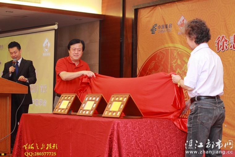阅读(13435) 回复(10) 查看全文>> - [2013-09-07]徐悲鸿奔马真迹暨中国珍邮奔马纪念册首发剪影 [图]湛江都市网讯(图/文:黄海之岛)9月6日上午,湛江市邮政局主办的徐悲鸿奔马真迹展览及中国珍邮奔马纪念册首发在皇冠酒店皇冠厅举行。这次展出了徐悲鸿的《柏树马》及《赠陶麟书》两幅奔马真迹。活动特邀嘉宾徐悲鸿长孙徐小阳先生和国内顶尖邮票设计大师姜伟杰先生(著名的80年猴票作者)一起参与此次纪念活动,并为现场购买《中国珍邮——奔马》纯金/纯银纪念珍藏版的朋友亲笔签名。