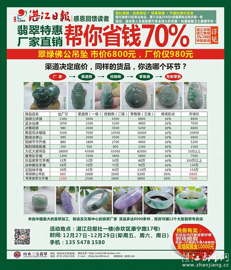 抢楼规则:跟帖统一回复呐喊“27、28、29日翡翠特惠厂家直销湛江日报社不见不散”即可!