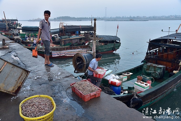 码头上,有往渔船上装冰准备出发的,也有刚从外海捕捞回来的两艘渔船,一群渔姑大婶正在船上解下渔民夜里网着的海鱼,让船老大露出笑收获的笑脸抬起一筐筐鲜鱼……。