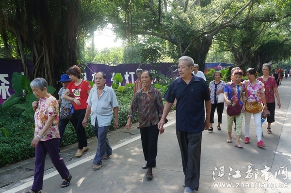 湛江森林公园作为生态郊野公园,环山依水,林木茂盛,被誉为湛江“市肺”。老同志三五成群或漫步在在这里的生态园、月季园,欣赏着公园的湖光山色,鸟语花香;或在绿茵草地上席地而坐,玩上一把纸牌,放松心身;还有不少春风得意的大姐们,面对美景花儿,掏出时尚的手机或相机,玩起了拍照留念。更多的老同志乘着这美好时光,互致问候,聊聊各自的家庭和生活乐趣。虽然半天的活动时间短暂,但老同志始终沉浸欢声笑语的快乐当中。(冯文星