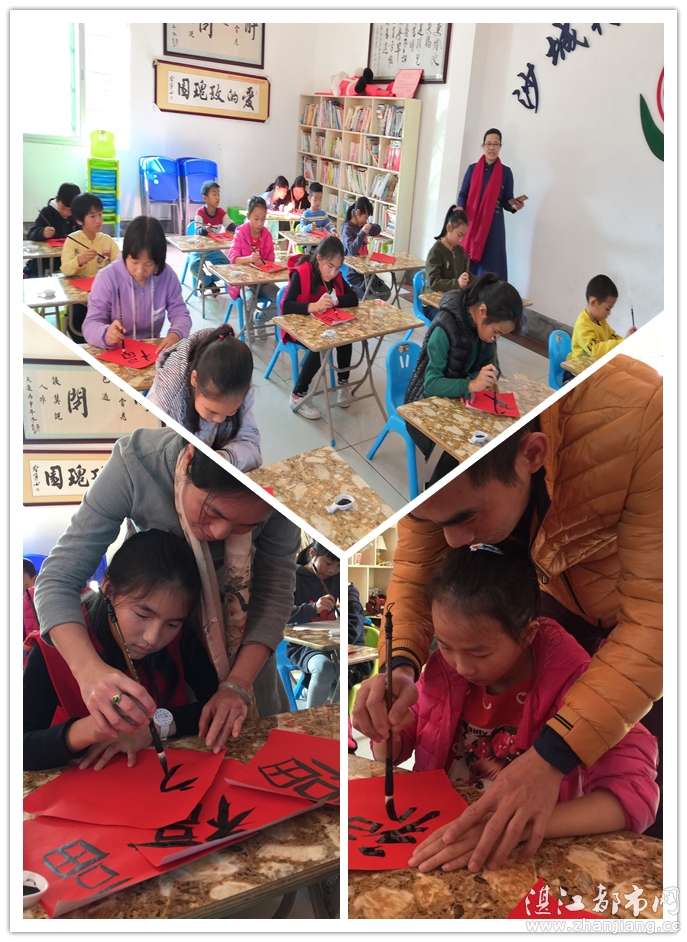 本次活动还邀请到湛江市书法家协会林老师和湛江市女书法家协会的徐老师,以及书法家协会王老师的两位得意门生前来指导村子里的孩子写“福”字,祝福大家过吉祥年。