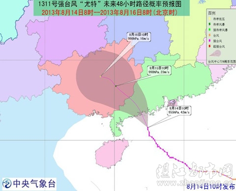 今天上午8时,强台风“尤特”中心位于北纬20点5度,东经112点5度,也就是在阳江市东南偏南方向约160公里的海面上,中心附近最大风力14级,达到42米每秒的风速,中心最低气压955百帕,8级大风范围半径约300公里。预计,强台风“尤特”未来以每小时20到25公里的速度向西北方向移动,将于今天中午到傍晚在阳东到吴川之间沿海地区登陆。希有关方面密切关注,并做好强台风的防御工作。