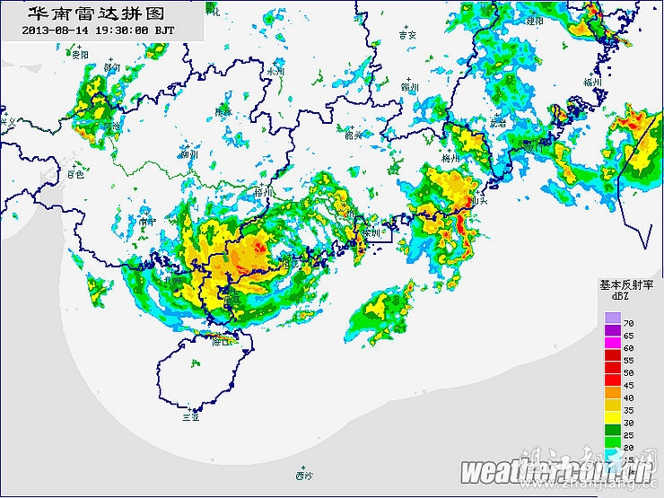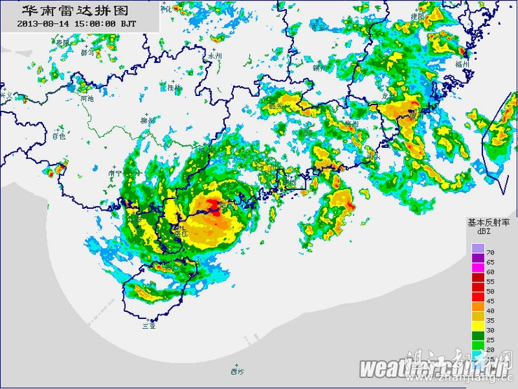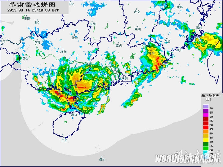 雷达回波图拼图——点击“华南”、“播放”——动态显示“台风眼”状况