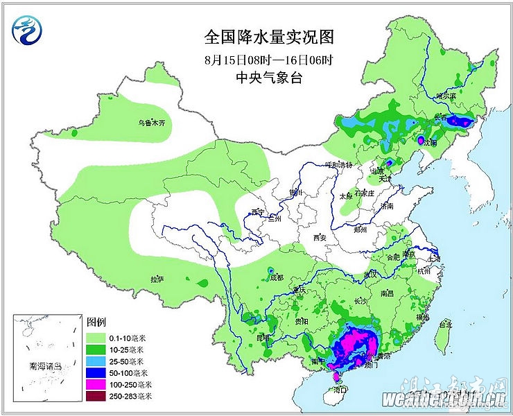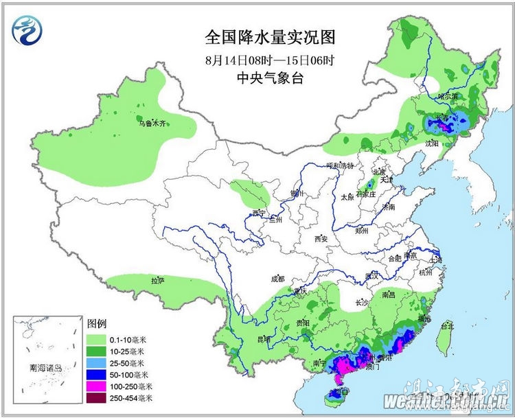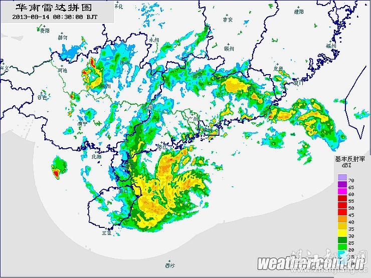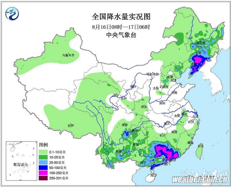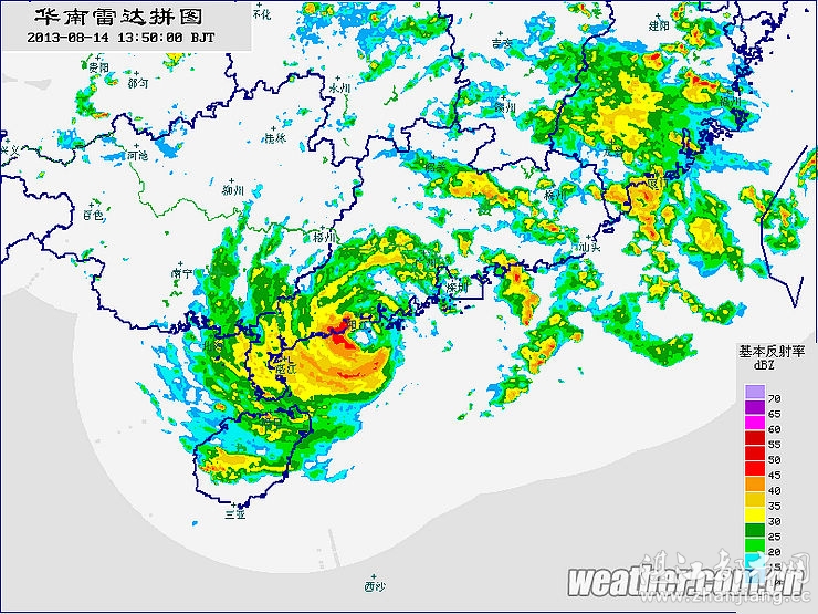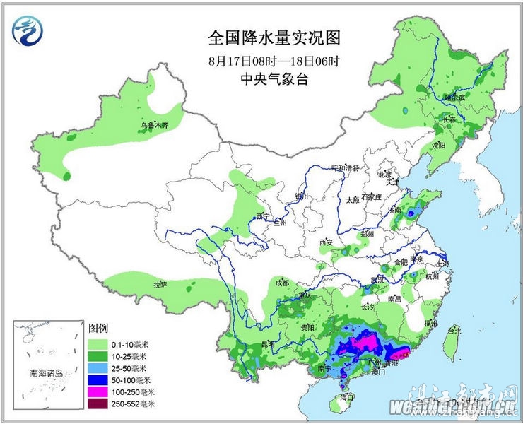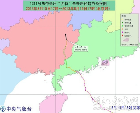 1311号强台风“尤特”08.14.15:50.登陆阳西(42米/秒)经高州信宜北上,低压长期滞留广西东部,后回旋南掉。持续强降雨,雨量实况图: