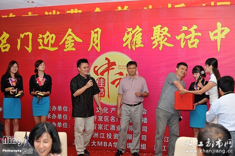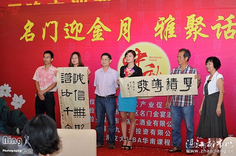 湛江都市网讯(图/文:无奇)2013年9月8日,在中秋即将来临之际,名门金宴隆重举行“名门迎金月”雅聚话中秋,签到的嘉宾 都有一份礼品,月饼一合,由名门金宴酒楼赞助,茶叶一合 由湛江市茗禾茶业有限公司赞助,全场宴席由名门金宴陈总赞助,全场红酒由百家汇酒业有限公司湛江分公司“名门店”美女陈总赞助,晚会内容丰富多彩,有夺人眼球的各类表演,还有喷香扑鼻的美食,更有激动人心的抽奖环节。现场掌声不断,笑声不绝,更有阵阵雷动的欢呼声。每个人脸上都洋溢着热情欢快的表情,映衬着舞台闪亮的灯光和天上柔美的月光,格外明朗。本次晚会的表演引人入胜。有欢快的舞蹈、悦耳的歌曲、变脸,索呐和魔术表演。更有本地书画家们现场作画送给现场的嘉宾,每个节目都受到了观众的热烈响应,本次的抽奖环节奖品丰富且极具吸引力,更是让气氛到达了高潮。在抽奖嘉宾抽奖的时刻,观众席上早已人群涌动,纷纷期待大奖能降临在自己身上,更有甚者已经在场下高喊“大奖是我的!”幸运儿纷纷降临,获得了梦寐以求的奖品,最后,在大家热烈的掌声中,“名门迎金月”雅聚话中秋,圆满结束了。而每一个嘉宾都还沉浸在晚会热闹的气氛中。