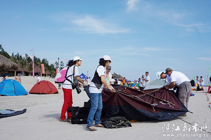 2013步天下首届帐篷节,于2013年9月14日(星期六)在茂名电白县博贺镇浪漫海岸隆重开幕,来自湛江市和茂名市及广西玉林陆川等地400多名驴友齐聚浪漫海岸,新老朋友欢聚一起,一派欢声笑语喜乐无穷。 当你站一个高点放眼望去,色彩班斓的各种各样的帐篷方方块块的整齐地洒在银色沙滩上,它是那么的漂亮和壮观。入夜后,喜欢热闹热烈的,可以听听沙滩音乐晚会、喜欢拍浪听涛的,可以跳入海中让海浪给你轻轻按抚你肌肤;沙滩电影也是另一个选择;如果你想一人发发呆,也可以拿把木椅靠上坐下来,让略带海味儿的风带上你的思绪飞翔......!