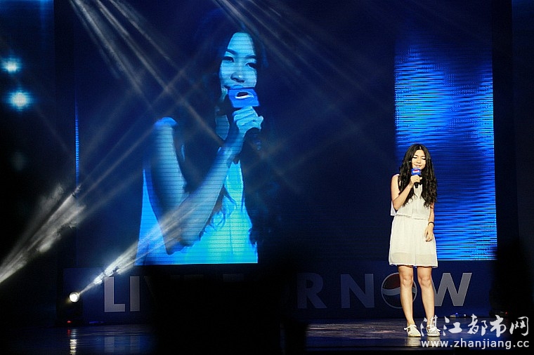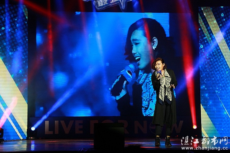 来自广东商学院的陈嘉媚是湛江人,在现场为湛江的观众献上《知足》和《我想我不会爱你》