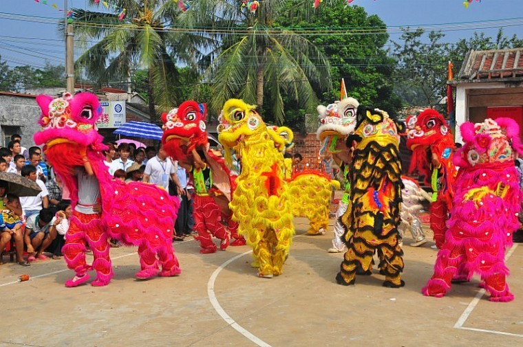 人舞狮的动作很高难度。