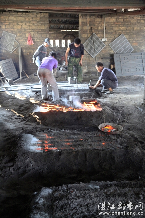 师傅说,铸造讲究技巧,倒模用的砂质须以河砂配黄泥,揉成块,以摔地不散为合格,铸铁炉温严格控制在1400度,误差100度。