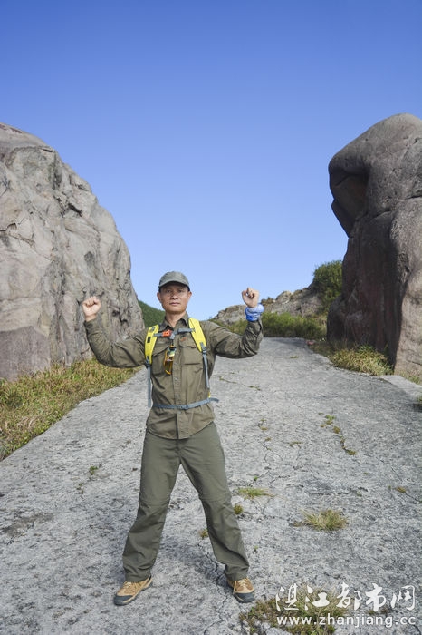 闲登鹅皇览秀嶂 上周日穿越陆川簕篱嶂,是跟着一群强驴们,在风雨中体味了什么叫做痛苦并快乐着,居然滋生了再去爬山越岭的冲动。 身未动,心已行,于是有了这次鹅凰嶂之行。 查资料,鹅凰嶂,位于阳西县西北70公里处,电白县罗坑水库东北部。地处阳西县、阳春市、电白县三县(市)交界处,海拨1337米(另据《电白人杂志》,海拔1348米),是阳江第一高峰,素有“阳江屋脊”之称,号称是广东境内最古老的陆地之一,动植物资源丰富。是广东省西南沿海不可多得的一块最大最完整的绿洲。 此山的最大亮点是鲜为人涉足的,虽然海拔不算很高,但因主峰附近曾是军事禁区,属无人烟的地带,甚至连当地的猎户甚少涉足主峰,后来才开始对外开放,近年来逐步成为驴友们的徒步露营好去处。 我们三辆车15人在观珠出口下高速,又走了40多公里县道,再穿过电白县里联村,还要经过几公里漫长的惊险弯径,终到达山脚下的一个林场管理处。 泊好车后,背包入山。上山约七八公里路,大概耗时3个钟,午餐干粮解决。一路上,山莽嶂苍,树茂林密。脚下是金黄沙沟与水泥残道交替,映眼的是未开发的山野风光,一切是那么的清新自然了,呼吸都觉得特别愉快。 移步换景,走走停停。登山中避免不了艰辛的坚持,当然也少不了征服的乐趣。爬到一半,远远可以看到鹅凰嶂主峰巍峨挺拔,在中午的阳光下显得白灿灿。可以想象,如果在早上金黄的光色下,一定会带来“日照金山”的视觉震撼。 沿山的石壁却是炭黑的,点缀期中的红苔更衬显出石的苍劲,而偶尔出现的山泉又极为清洌——山刚水柔,拥有了优秀景区的优势资源,这里可能很快会被开发。山顶为废弃军事基地,穿过地道式房子可涉草劈藤一段陡坡后达顶端。在这黑漆漆的地道中,偶遇阳西的驴友,得以借光通过,要不可真有点怕怕啊! 一番跋涉,终登顶峰。站在山顶的眺望台上,好好享受“一览众山小”的喜悦!望群山连绵,云缠雾绕,看苍鹰穿梭,芦花飞舞,任山风送爽,心旷神怡。那感觉,借用网友的话,“深吸一口新鲜的空气,仿佛来到了人间仙境”。 之前做功课,知道鹅皇山有几个著名的大瀑布,可惜我们不是从那条路上山,看不到飞瀑美景了,少少遗憾! 所以,下次定要重来,并且带帐蓬来——露营山顶看日出!