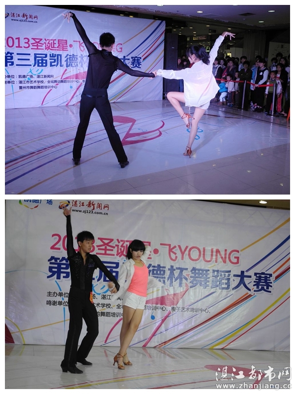 2013年12月14日下午由凯德广场、湛江新闻网主办的2013圣诞星.飞YOUNG第三届凯德杯舞蹈大赛在凯德广场开赛。有来自湛江艺术学校、全城舞动舞蹈培训中心、樱子艺术培训中心、雷州市舞韵舞蹈培训中心等单位25个队参赛。比赛现场精彩不断,本人就把当时拍下的镜头与大家共同分享!(由于图片太多,本人采取拼图方式,希望理解)