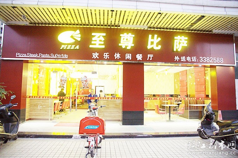 至尊比萨的送外卖工具,不过太远就送不了,因为比萨需要保证系出炉热热时候散发出的香味吃起来才好吃。具体位置就咨询店家吧:0759-3382588