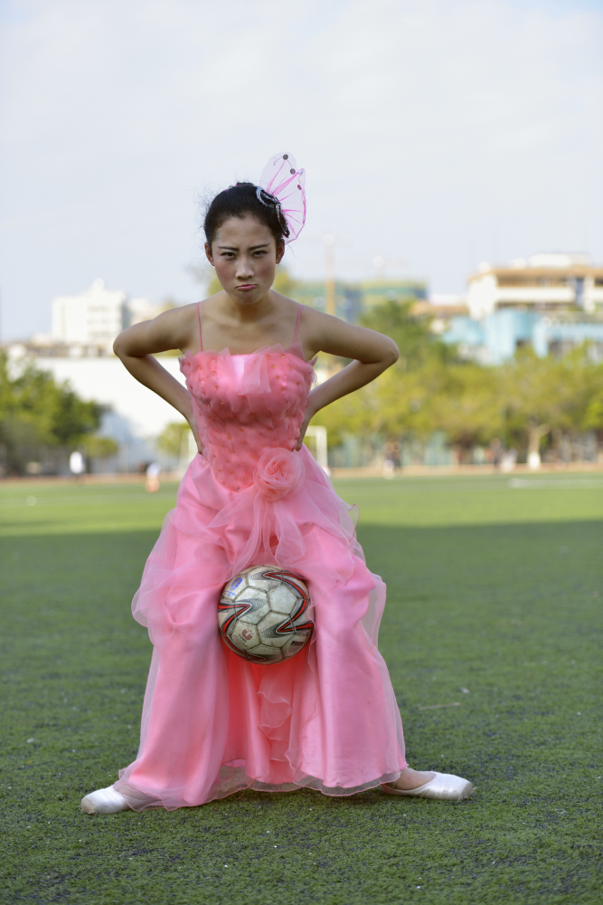 模特动作表情,服装和足球不协调,气氛不对,没有体现出美态。
